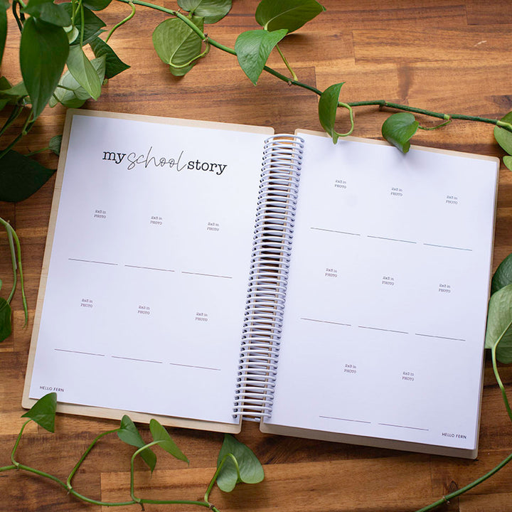 • My School Story photos: Two pages to add a photo for each year of their schooling journey. Includes fifteen 2x3" photo spaces with a line underneath each space for a caption.