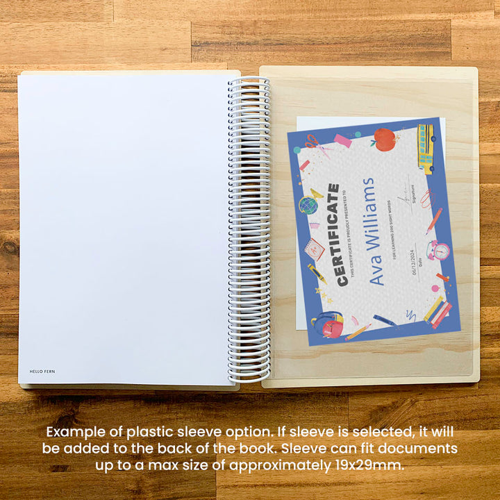 Capture the incredible journey of your child's school years with our beautifully crafted My School Story book. This custom-etched wooden keepsake can be personalised with your child’s name on the cover, making it truly one of a kind.
