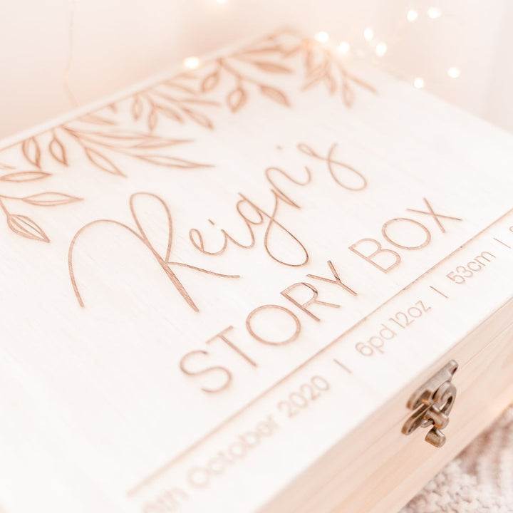 'Story Box' Large Wooden Keepsake Box (customised with name + wording)