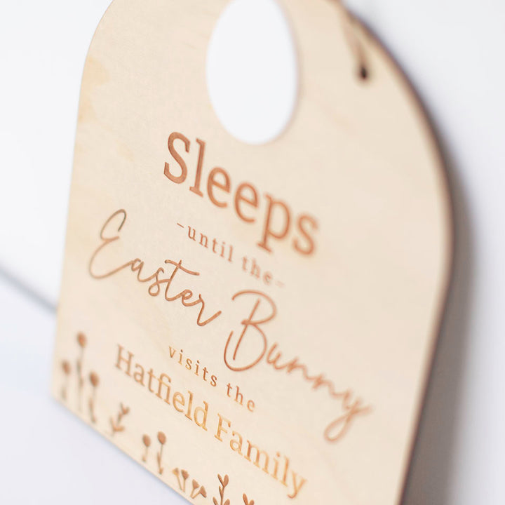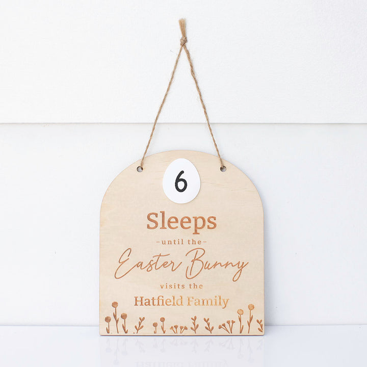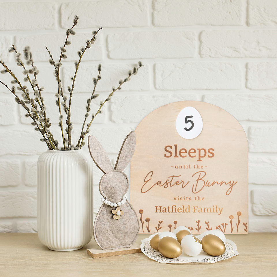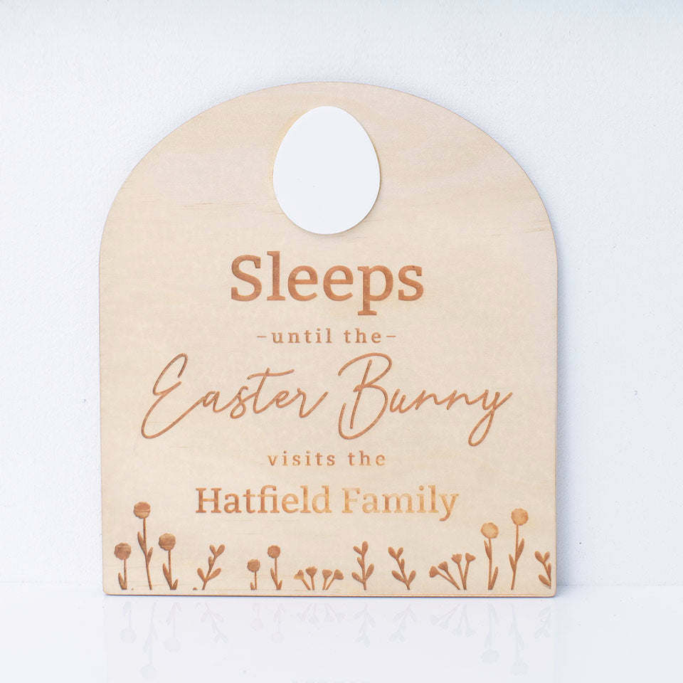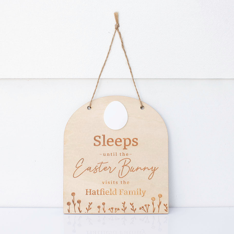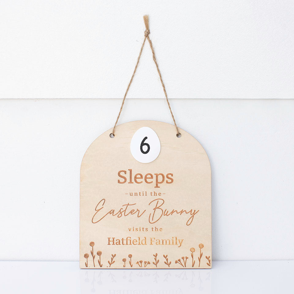 Get ready for Easter fun with our adorable wooden countdown signs! These cute signs have a special acrylic egg-shaped space at the top where you can record how many sleeps are left until the Easter Bunny hops into town. You can even add a name or names to make it extra special, and choose whether you'd like it hanging or standing.