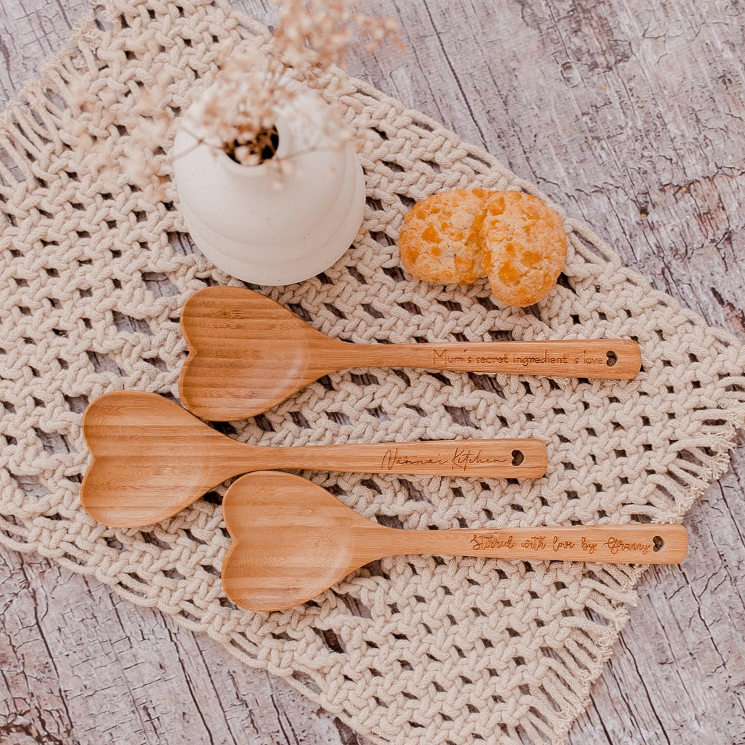 Add a touch of elegance to your Mother's Day gifts with our custom-etched wooden spoons. These charming spoons are delightful décor pieces, perfect for the cherished mum or granny in your life. Crafted from high-quality timber and adorned with simple yet timeless etchings, they make for a classic and heartfelt gift that will surely be treasured by Mum, Nanna, Oma, Nonna, Grammy, or Grandma for years to come.