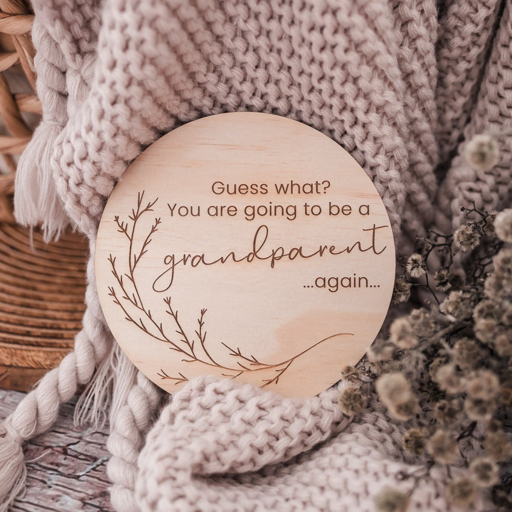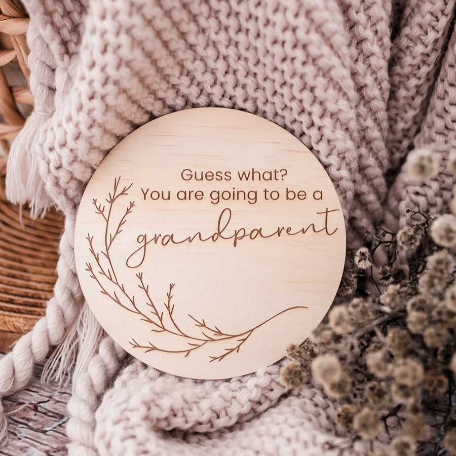 Our arch wooden announcement disc is the perfect way to announce your pregnancy to the world.