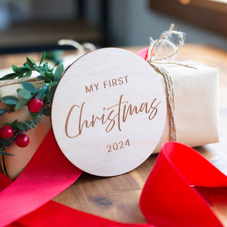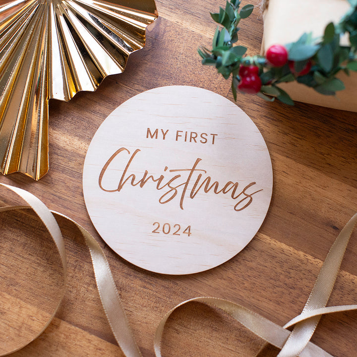 Capture the magic of your baby's first Christmas with our 'My First Christmas' wooden disc. Perfect for photos, flat lays, and festive décor, this beautiful keepsake adds a special touch to your holiday memories. Made from beautifully hand-sanded timber, it’s a charming way to celebrate this milestone moment!
