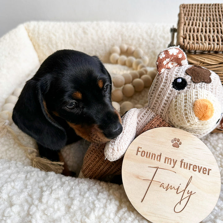 Capture every precious moment with your furry friend using our adorable wooden Puppy Achievement Milestone Discs! This charming set of 16 discs celebrates your dog's most memorable milestones, from "Found my furever family" to "Graduated from puppy school" and beyond. Perfect for snapping those Instagram-worthy photos, these discs add a playful touch to your doggo's journey, making it easy to treasure and share their special moments. Whether it's their first walk, first Christmas, or a visit to the vet, these discs are a must-have for every proud pet parent!