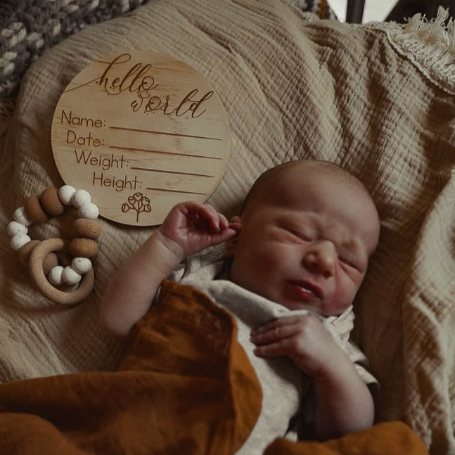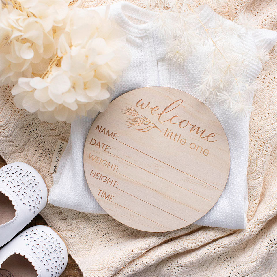 Wooden 'welcome little one’ Birth Announcement Disc - Country