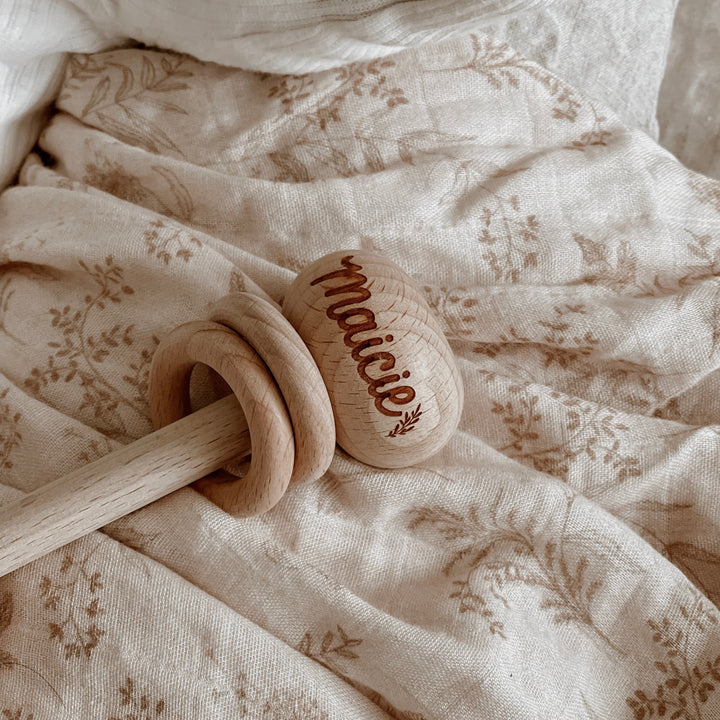 Our customisable wooden rattles are the most beautiful gift and toy for your newborn. Made and tested to strict Australian toy standards, they come presented in a beautiful cotton bag and can be etched with bub's name and birth date.