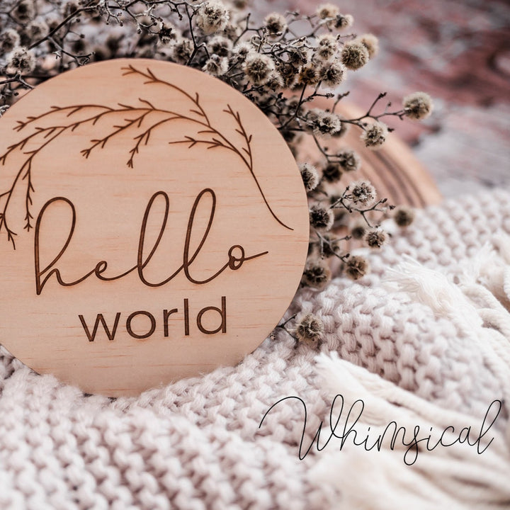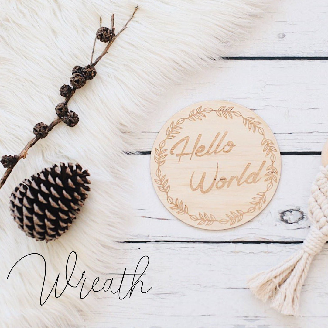 Mark your memories and share your baby's milestone announcement in your own unique way with these single wooden announcement discs. These announcement statement pieces are the perfect addition for your images, flatlays, shelves or nursery to tell and share your story with friends and family.