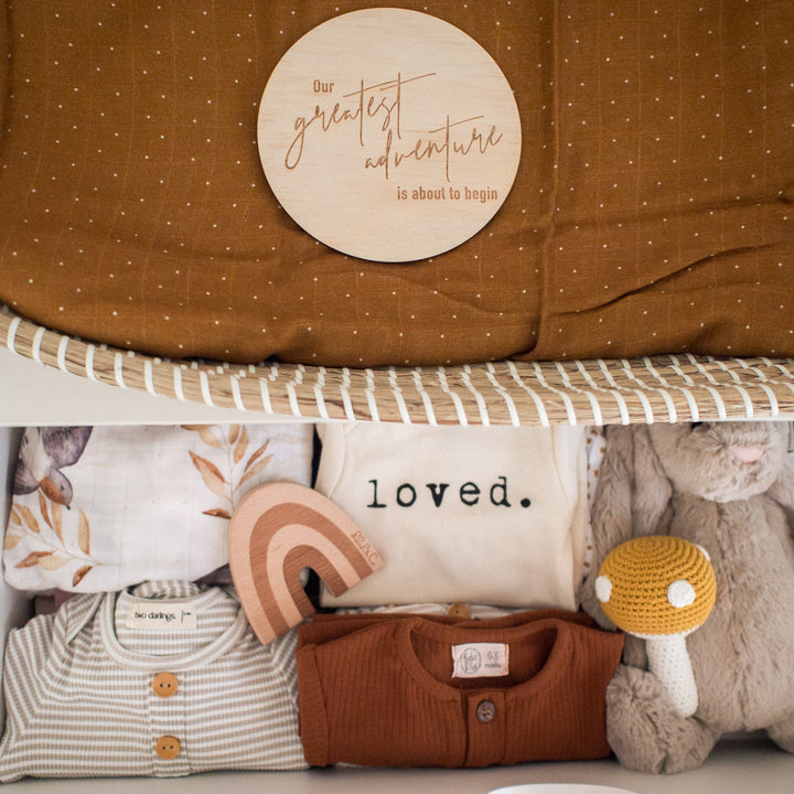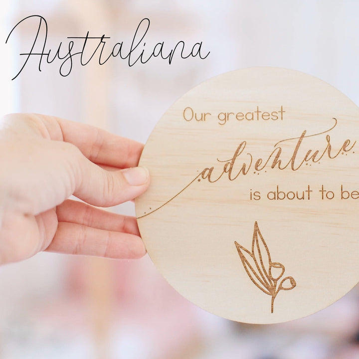 Mark your memories and share your baby's milestone announcement in your own unique way with these single wooden announcement discs. These announcement statement pieces are the perfect addition for your images, flatlays, shelves or nursery to tell and share your story with friends and family.